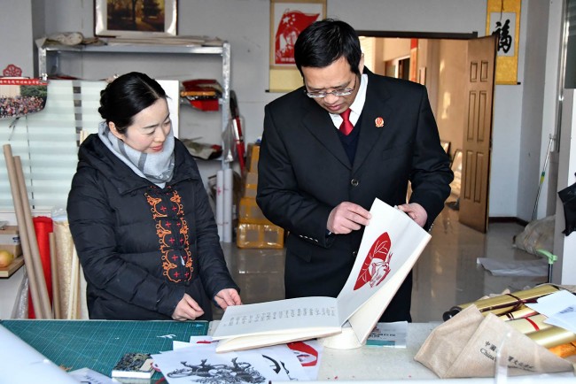 1月12日下午,虞城县人民法院党组书记、院长陈晓辉走访河南省人大代表、中国剪纸艺术家、剪纸非物质文化遗产传承人贾艳梅女士,征求她对法院工作的意见建议。