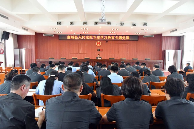 按照县委党史学习教育领导小组工作安排,5月27日下午,虞城县人民法院党组书记、院长陈晓辉为全体干警上了一堂生动的党史专题课。