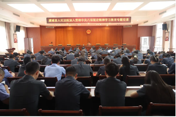 为深入贯彻中央八项规定精神学习教育,进一步加强全体干警的作风建设,6月25日下午,虞城县人民法院党组书记、院长代恭伟以《深化作风建设 永葆政治本色 以优良司法作风护航新时代法治建设》为题,为全院干警讲授专题党课。